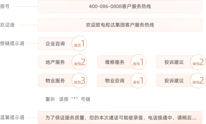 真挚成就服务,关怀孕育美好。和达集团400服务热线主要为客户提供监督集团所属各项目地产、物业服务工作,给予客户包括企业咨询、售后保修、投诉处理、物业服务、咨询建议等全方位服务,勾勒舒心生活的每一种场景,具体涵盖以下服务: